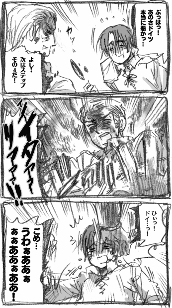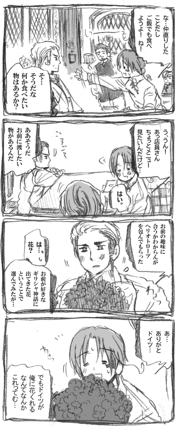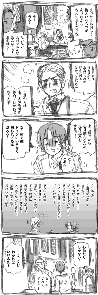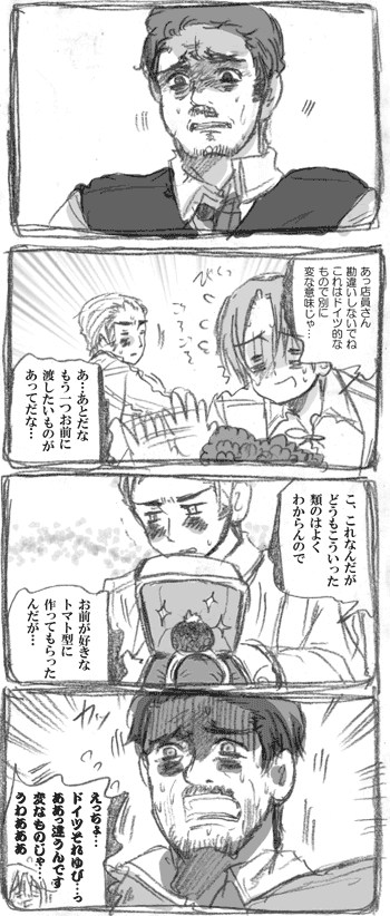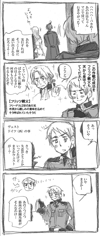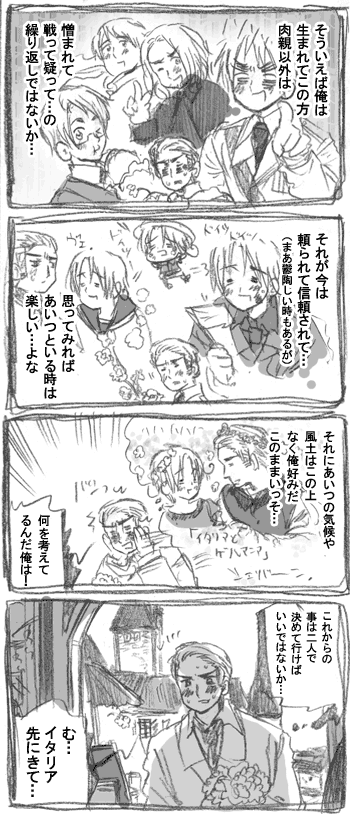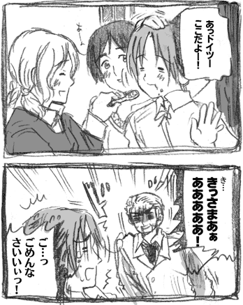 イタリアが茶髪でおおらかそうな人物に、ゲルマニア(ドイツ)が