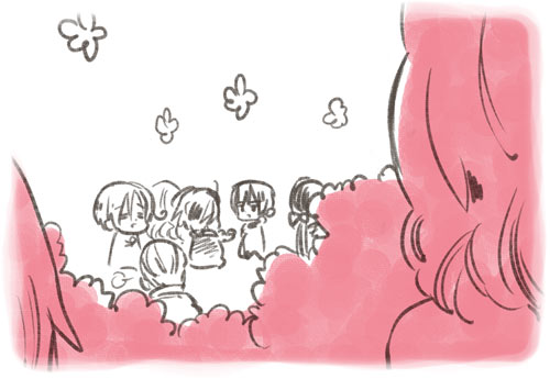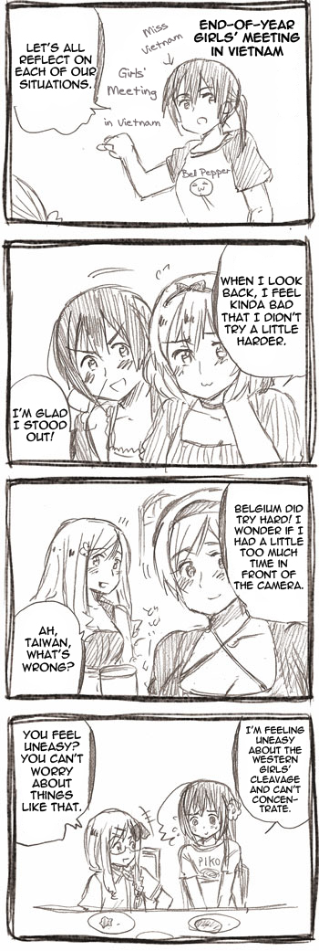 ![]() | Ah, that’s right! The next request is, “A lot of Hetalia girls”… Huh!? There was an image like that!? |