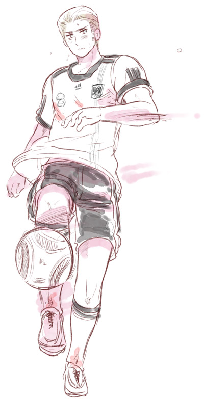 >Mr. Hima, please definitely, definitely sketch a muscular Germany wearing a (football) uniform and playing well…!