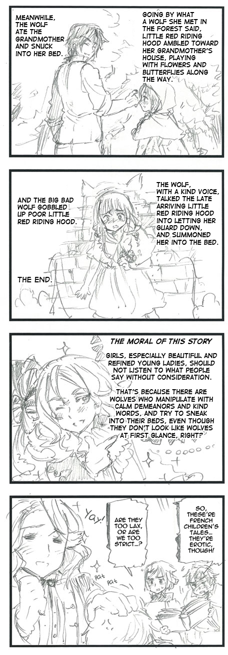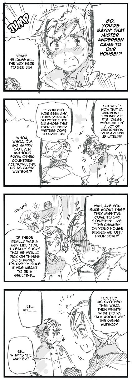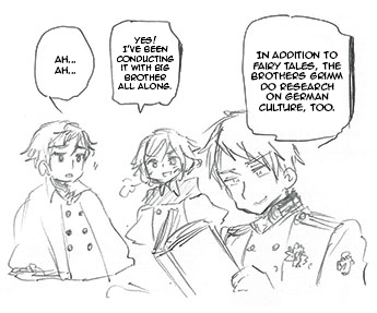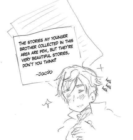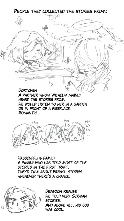The Brothers Grimm write various things after the fairy tales.