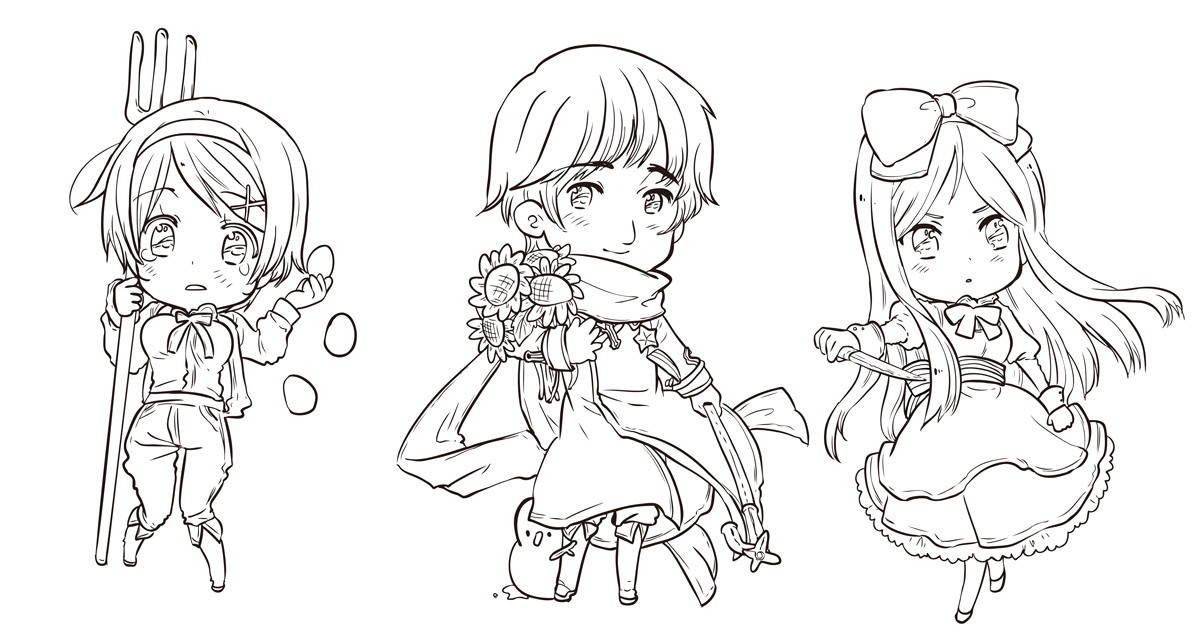 身長差はなんとか今まで出てきたキャラのみ線画描き終えました。よかった。