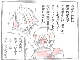 ![]() | スーさんその封筒はリラックスしてる時に あけたほうがいい感じです…。 |