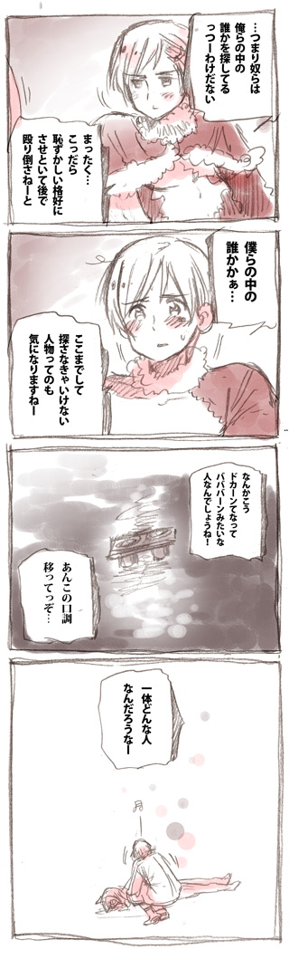 ![]() | 情緒性かぁ…。 そうだクマ三郎さんを前に持ってきて… 僕らはひたすら背景に徹するとか。 |