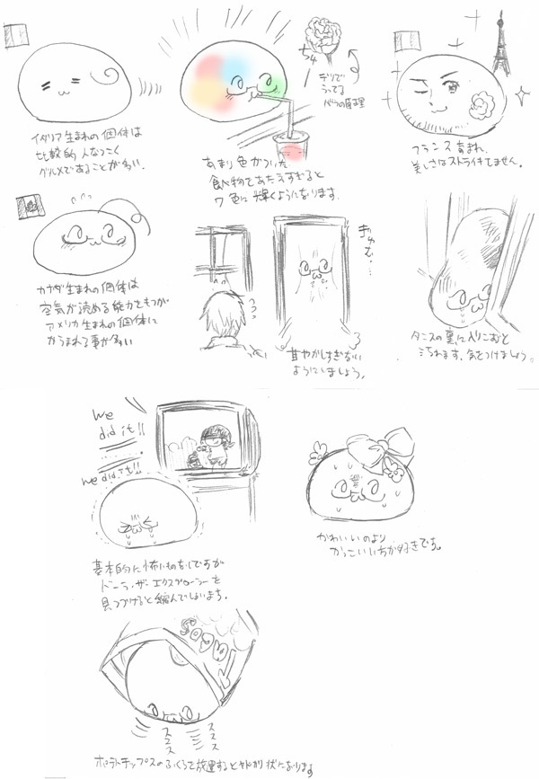 ミニキャラの仕事中。キャラが増えた分並べるとカラフル。