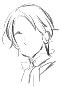 I have decided on the shape of his eyes and slanted eyelids but his hair and clothes may change a bit.