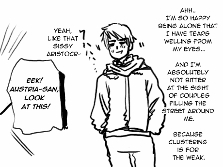Oh, though it’ll be nice if Austria-san and Hungary-san spent Christmas together in harmony, like Germany and Italy… ← I- I want to see!