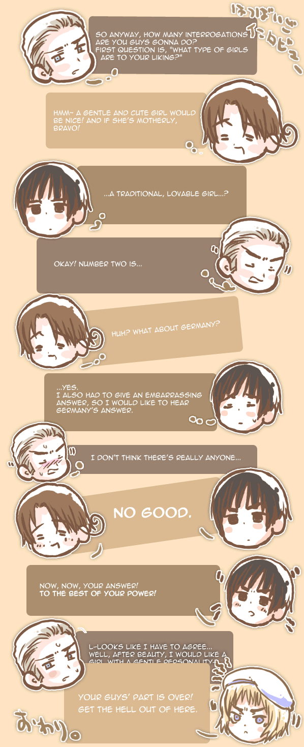 ![]() ![]() ■ 5 Days Remaining ■ ■ 4 Days Remaining ■ ■ 3 Days Remaining ■ ■ 2 Days Remaining ■ ■ 1 Day Remaining ■ ■ The Appointed Day ■ ![]() ■Discarded Comic■ ![]() [Axis Bento] 枢軸に関係したものが詰め込まれたお弁当。 ドイツがソーセージのみ。 当時枢軸関係のものがこの他にも いっぱいでていたらしい。 会津にも枢軸三国のつながりを 残すものがちょこちょこある。 図書館でWW2関連の本読んでたら出てきたんですが、 |